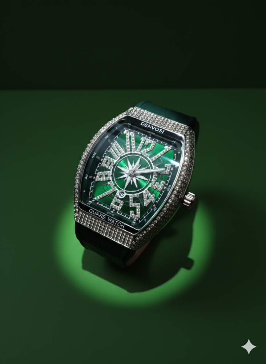 Crafted with high-quality materials, the green diamond watch ensures durability, comfort, and long-lasting performance. The striking green dial reflects light beautifully, creating a sophisticated and premium appearance, while the durable strap provides a secure and comfortable fit throughout the day. Its modern yet timeless design complements casual, business, and formal attire effortlessly.